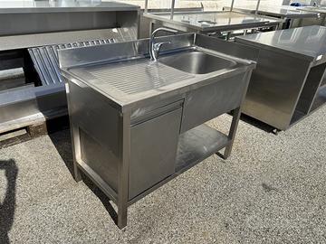 LAVELLO ACCIAIO INOX CON ALZATINA, PIANO INFERIORE E PRATICO SPORTELLO