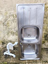 Vendo per cambio cucina, lavello in acciaio inox a due vasche con gocciolatoio, completo di raccordi, è presente ciò che è in foto. Misure come da foto, larghezza circa 50cm, lunghezza totale 116 cm circa, vasche da 35 cm e gocciolatoio da circa 39 cm circa. Solo ritiro a mano.