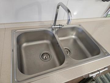 vendo come da titolo lavello acciaio inox antigraffio da incasso dalla ditta CM doppia vasca (misure 80x50 cm circa); completo di miscelatore achesso in acciaio inox.