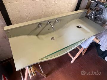 Vendo lavello AGAPE modello “onda”colore verde completo di staffe per fissaggio a muro, bicchiere porta spazzolino, porta asciugamano e di rubinetteria FANTONI, scarico sifonato e rubinetti di sicurezza..se serve set di rubinetti cordibati per bidet e doccia.