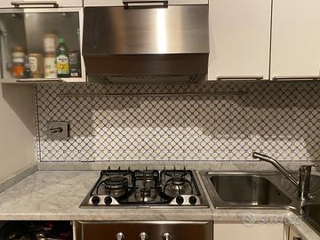 Lavello in acciaio angolare a due vasche più piano in marmo già tagliato a misura. Super occasione! Misure su richiesta, vendibili anche separatamente.