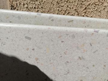 Bellissimo lavello in fragranite color avena, angolare con gocciolatoio, perfetto e comodissimo. L' ho fotografato appena smontato ed è da pulire. Se interessa, regalo il top che lo accoglieva, che comprende anche lo scasso per il piano cottura e di cui ho allegato due foto.