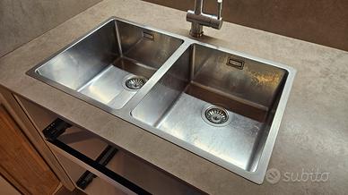 Vendo lavello Barazza in acciaio inox spazzolato di alta qualità, modello a 2 vasche quadrate, installazione sovratop con spessore di un solo millimetro. Design moderno e lineare.