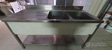 Lavello con alzatina, 1 ripiano e 2 vasche, gocciolatoio a sx