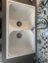 Lavello bianco con miscelatore, come da foto qualche segno di usura sul miscelatore, il lavello quasi perrfetto come nuovo