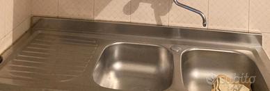 Lavello in acciaio inox con mobile bianco, misure larghezza 120 cm, profondità 50 cm, altezza 85 cm. Da ritirare sul posto a cura dell'acquirente.