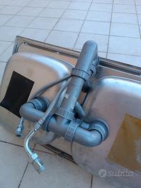 Vendesi lavello cucina a 2 vasche completo di miscelatore, sifone con predisposizione lavastoviglie e clip di montaggio. Verrà ceduto igienizzato. Misure 86 x 50