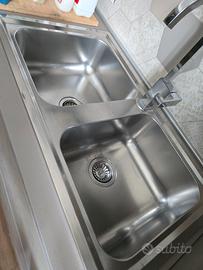 Lavello cucina Foster a due vasche Misure 86x50 In acciaio inox Compreso di miscelatore Usato ma in buone condizioni