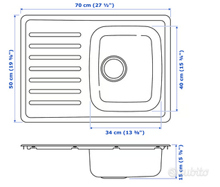 Svendo lavello cucina marca IKEA per sostituzione. Il lavello è nuovo e ancora imballato, lo cedo in quanto presenta una leggera piccola ammaccatura nel vascone (vedi foto 4) ma è perfettamente funzionante. Il costo sul sito è 53, dato il difetto lo vendo a 35 euro.