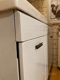 Mobiletto con piedini che lo sollevano da terra. Lungo circa 70 cm, usato, buono stato con piccoli segni di usura come da foto, mobile lavello cucina con sopra lavabo in ceramica con comida vasca profonda (si puo separare se interessa) e parte sotto in lamiera smaltata con 2 ante apribili