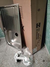 lavello da appoggio cucina in acciaio inox, 1 vasca a sinistra con gocciolatoio a sinistra. dimensioni 85x50 cm. come nuovo