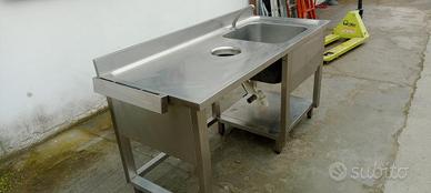 lavello da cucina professionale in acciaio,una vasca e piano di lavoro con scarico 70x160x85h 350 euro visibile a casei gerola posso consegnare o potete ritirare da lunedì a sabato