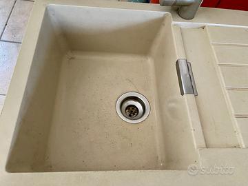 Lavello per cucina in fragranite da incasso. Con gocciolatoio a destra. Col beige. Misure: h cm50; L cm82.