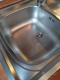 Lavello in acciaio con doppia vasca e rubinetto. Disponibile da subito, da smontare dalla cucina. 3 piano con ascensore.