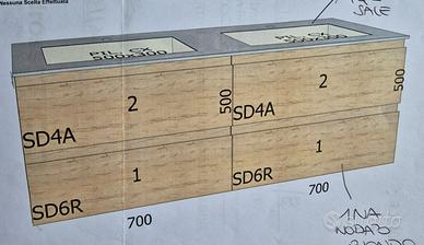 lavello con 2 vasche integrate in gres porcellanato, MISURE 140X50 marca AZZURRA da completare con mobile in legno