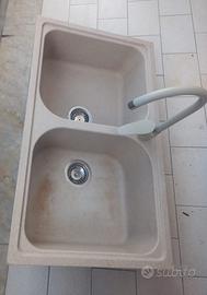 Lavello due vasche in fragranite colore avena. leggermente macchiato dall usura