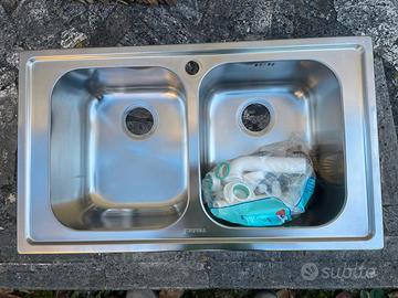 Vendo lavello da cucina APELL serie LINEAR due vasche satinato 86x50cm in acciaio inox 18/10 completo di scarichi, sifoni ecc NUOVO mai usato… vendo per cambio modello.