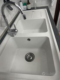 Lavello bianco in fragranite a 2 vasche più sgocciolatoio lunghezza 1500 x 50 vasche profonde 20