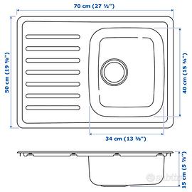 Lavello incasso, 1 vasca/sgocciolat, inox, 70x50.