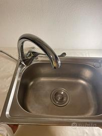 Lavello in acciaio inox con rubinetto da cucina rettangolare.