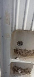 Lavello in ceramica con 2 vasche e sgocciolatoio. Misure in foto. Quello che vedete in foto è solo sporco perché sta riposto in un magazzino. RITIRO A MANO. NO SPEDIZIONE