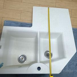 Vendo per cambio cucina, lavello 2 vasche angolare con gocciolatoio in fragranite della Franke Il lavello é usato e si vende con la formula visto é piaciuto, dal momento che le foto corrispondono al reale stato di fatto. Prezzo trattabile