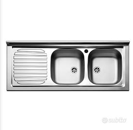 Lavello inox da mobile cm 120 a 2 vasche con scolapiatti gocciolatoio a sinistra