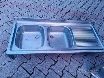 Lavandino lavello acciaio inox cucina, due pozzetti. Misure 120 X 50 cm. Ottime condizioni