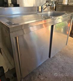 Vendo lavello inox professionale seminuovo ad ante scorrevoli completo di rubinetto con doccetta e leva inox e tutte le tubazioni di carico e scarico acqua. Misure 120x60 cm
