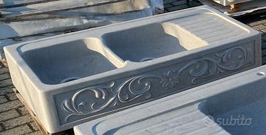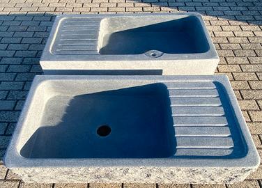 Sono scavati da massello di granito beige o diorite, sono molto più resistente e durevole del marmo e della pietra. Non sono di cemento, graniglia o polvere di marmo. Non soffrono il gelo ed sono ideali sia per interni che per esterni.
