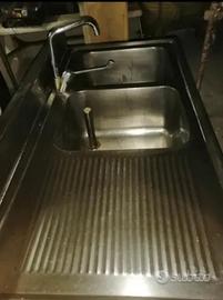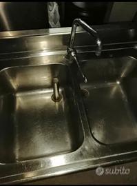 lavello doppia vasca in acciaio 140cm con fontana inclusa.