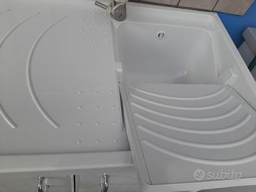 Vendo lavello per esterno in pvc bianco mai usato misure 110x60 possibilità di inserimento per lavatrice a €140,00 con la possibilità di acquistare anche il rubinetto