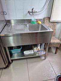 lavello per cucina bar/ristorante,in acciaio inox professionale, a vasca singola,gocciolatoio a sx,ripiano inferiore e piedini regolabili in altezza.