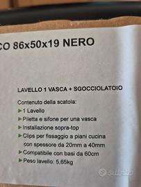 Vendo lavello + sgocciolatoio per errato acquisto. Lavello 1 vasca + sgocciolatoio nero Dimensioni 860×500×190mm