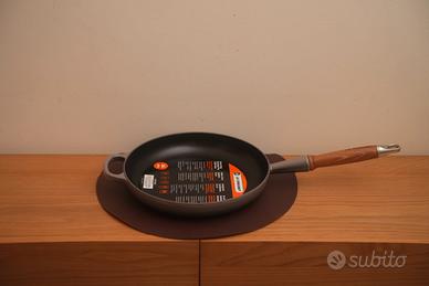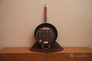 La famosa Padella Evolution Le Creuset con il manico in legno in ghisa vetrificata.