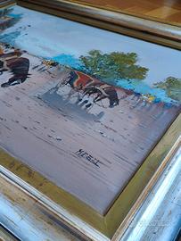 Olio su tela, autore M. Belli. Rappresentazione in stile impressionismo moderno del Boulevard des cappucines a Parigi Cornice: 92×72cm Tela: 70×50cm