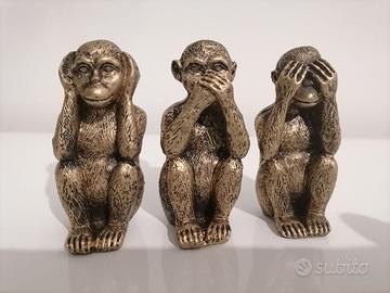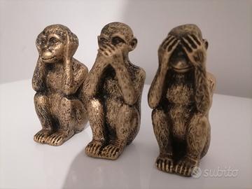 Set di tre statuette raffiguranti le iconiche scimmiette della saggezza: non vedo, non sento, non parlo. Realizzate in resina leggera, queste statuette sono perfette per aggiungere un tocco di filosofia orientale al tuo arredamento. Le dimensioni compatte (circa 5-7 cm di altezza) le rendono ideali per piccoli spazi, mensole o scrivanie.