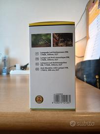Bassi consumi, 9w, E27. La lunghezza d'onda di 590nm, corrispondente al giallo arancio, inibisce il volo delle zanzare proteggendo l'ambiente illuminato. Illuminazione intensa, illumina fino a 20metri quadri. Può essere utilizzata a soffitto o su lampada da tavolo. Si consiglia di posizionarla lontano dagli occhi. Quando in funzione sostiuisce perfettamente una comune zanzariera. Efficace, non tossica, non diffonde aromi e chimici nell'ambiente come i classici diffusori antizanzare. Non richiede applicazione di repellenti sulla cute come i classici repellenti. Non rilascia odori. Non uccide le zanzare ma le tiene gentilmente lontane da casa. Scelta Ecologica Ecosostenibile