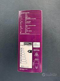 Potenza 8,5W, luminosità 810 lumen, temperatura di colore regolabile da 2700K a 6500K (da bianco caldo a bianco freddo), compatibile con protocollo Zigbee (non WiFi, non Bluetooth).