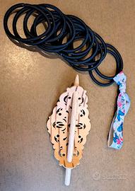 Decorazione in legno per fermare e legare i capelli, acquistata a San Pietroburgo, finemente lavorato, di circa 10 cm di lunghezza; il tutto nuovo, mai utilizzato; ubicazione: San Donato Milanese (MI)