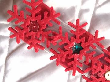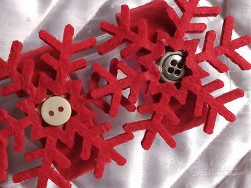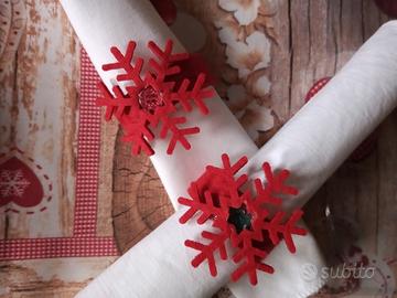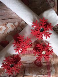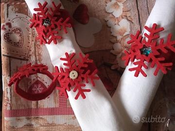 4 simpatici legatovaglioli rossi in tema "Inverno", in pratico feltro di poliestere impermeabile, nuovi.