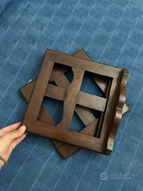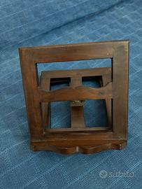 Leggio in legno di quercia da scrivania, adatto anche a libri grandi. Il leggio è girevole e si presenta in ottimo stato, a parte qualche segno di utilizzo come da ultima foto. Misura 29 cm per lato, altezza 12 cm circa da chiuso e 26 cm da aperto.