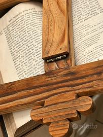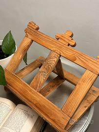 Leggio vintage in legno, noto anche come supporto per libri o, specificamente, supporto per libri di cucina.