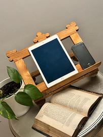 Ha lo stile naturale e artigianale. È un leggio da tavolo, reclinabile, che presenta un design essenziale e pulito.