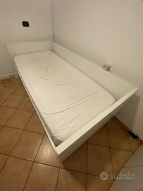 Vendo letto singolo bianco, dispone di materasso in ottimo stato, 4 rotelle che si possono bloccare e testiera.
