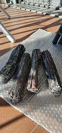 4 pezzi di legna finta con effetto ardente, adatto per camino elettrici e camini a vapore. la luce che del camino dono un effetto di legno che arde.