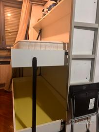 Vendo letto a castello trasformabile colore bianco e verde mela. Fatto in mobilificio su misura, per letti singoli standard 90X200. Materassi inclusi, smontaggio e trasporto a carico dell’acquirente. Inclusa scaletta e sponda.