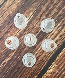 Decomax è unasac a pocheriutilizzabilein silicone con 3 a stella e 3 tondi + i 2 tappi) per farcire e decorare cupcakes, torte, biscotti, e bignè.. Il coperchio ha una chiusura a vite, per evitare la fuoriuscita delle creme e le punte si incastrano perfettamente tramite un perno.
