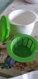 contenitore per preparare formaggio fatto in casa, usando solo latte e un goccio di limone o di aceto per far cagliare .