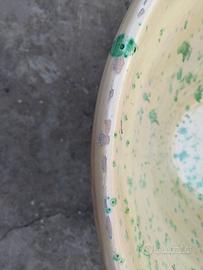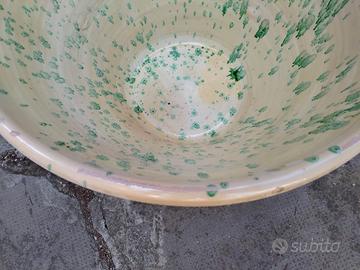 Vendesi lemmo siciliano di terracotta smaltato solo internamente colore giallo con chiazze verdi.